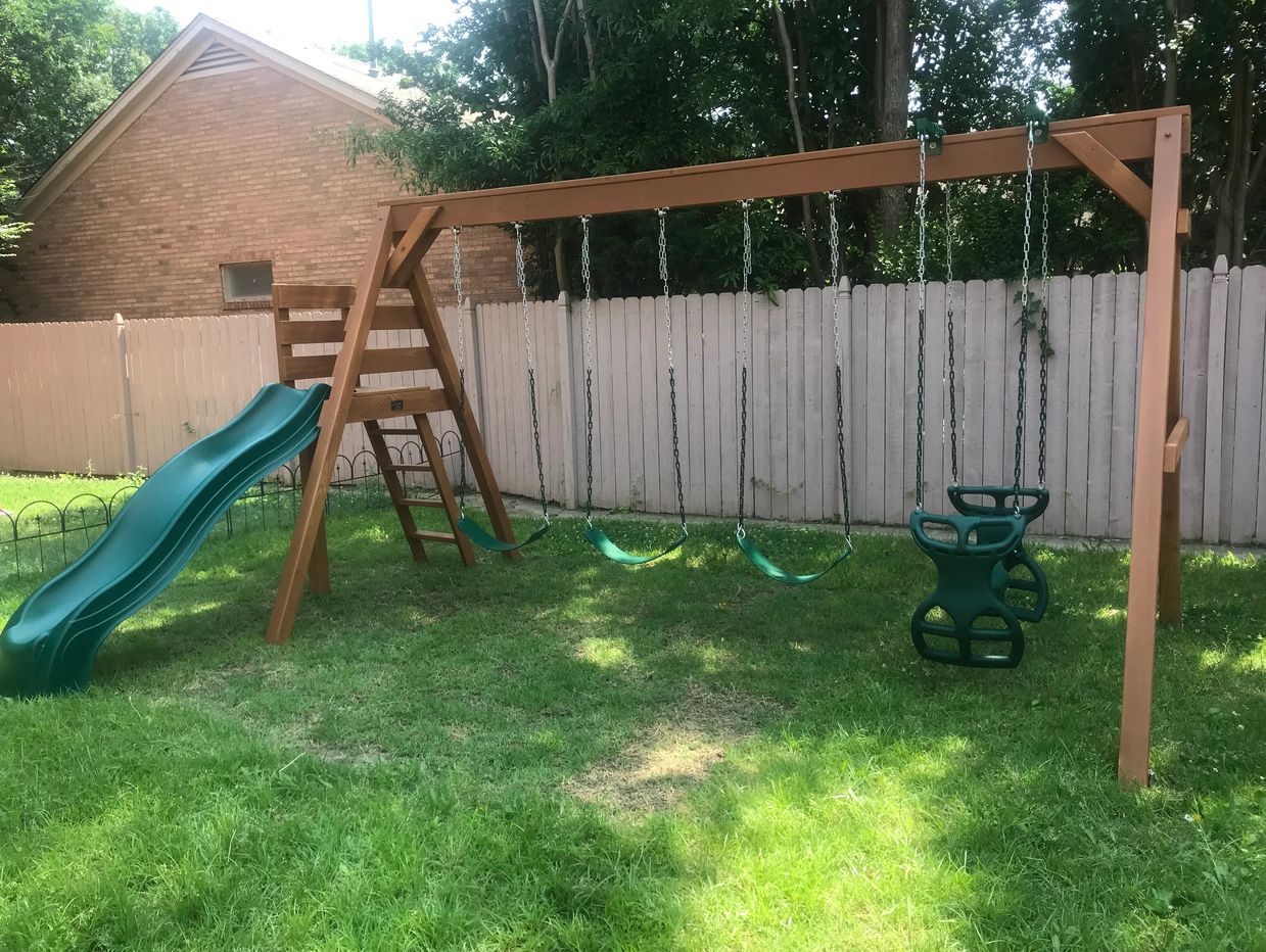 One swing can be replaced with a plastic horse glider with brackets for an additional $150